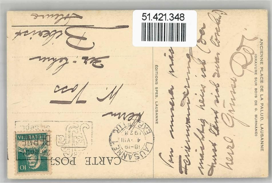 1000 Lausanne Losanna 1928 Künstlerkarte