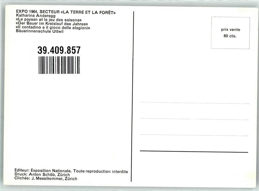 1000 Lausanne Losanna 1964 - Expo Secteur La Terre et la Foret der Bauer im Kreislauf des Jahres Katharina Anderegg