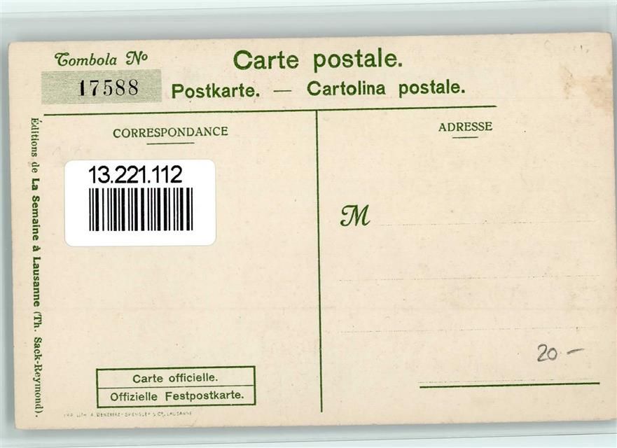 Lausanne, Fete Federale de Gymnastik 1909 Schwinger Tombola Nr. 17588