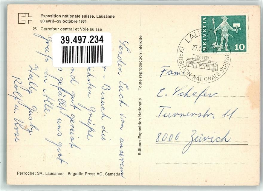 Lausanne, Landes-Ausstellung 1964 Zentralplatz Nr. 26