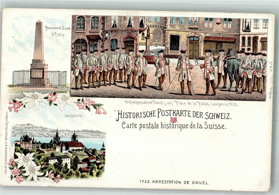 1000 Lausanne Losanna Lithographie Historische Postkarte Schweiz Arestation de Davel 1723 Denkmal