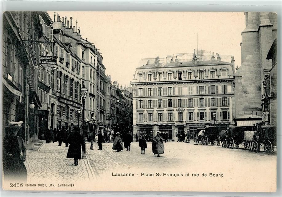 1000 Lausanne Losanna Lithographie Place St.Francois Rue de Bourg Kutschen