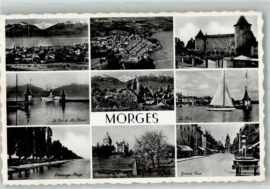 1110 Morges 1949 Foto AK Schloss Fliegeraufnahme Hafen Grand Rue