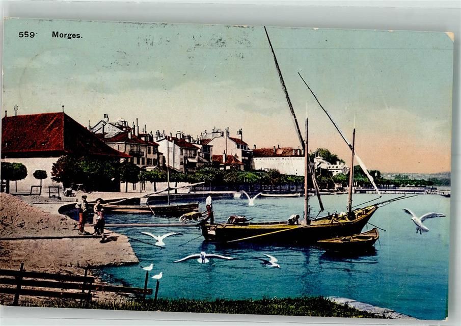 1110 Morges Foto AK Hafen Fischerboot