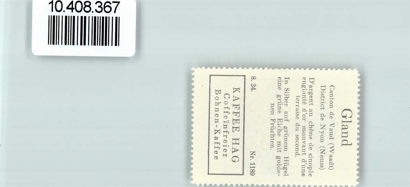 1196 Gland - Vignette Wappen Kaffee Hag ca 1920-1940 Eiche