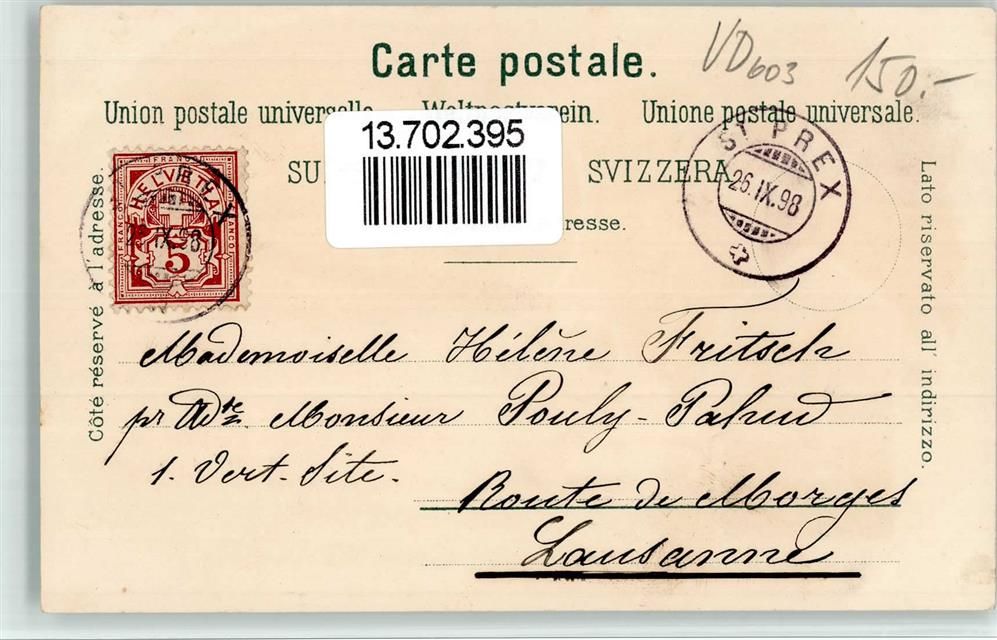 1197 Prangins 1898 BOAKC Lithographie Schloss Chateau Monument des Vaudois du Piemont Verlag Künzli Nr 293