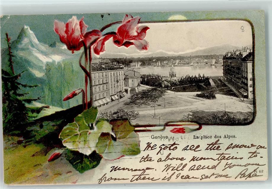 1200 Genève Genf 1900 Gebrauchsspuren La place des Alpes Zierblumen