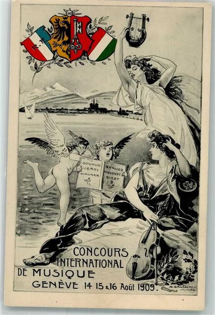 1200 Genève Genf 1909 - Concours International de Musique Wappen Engel