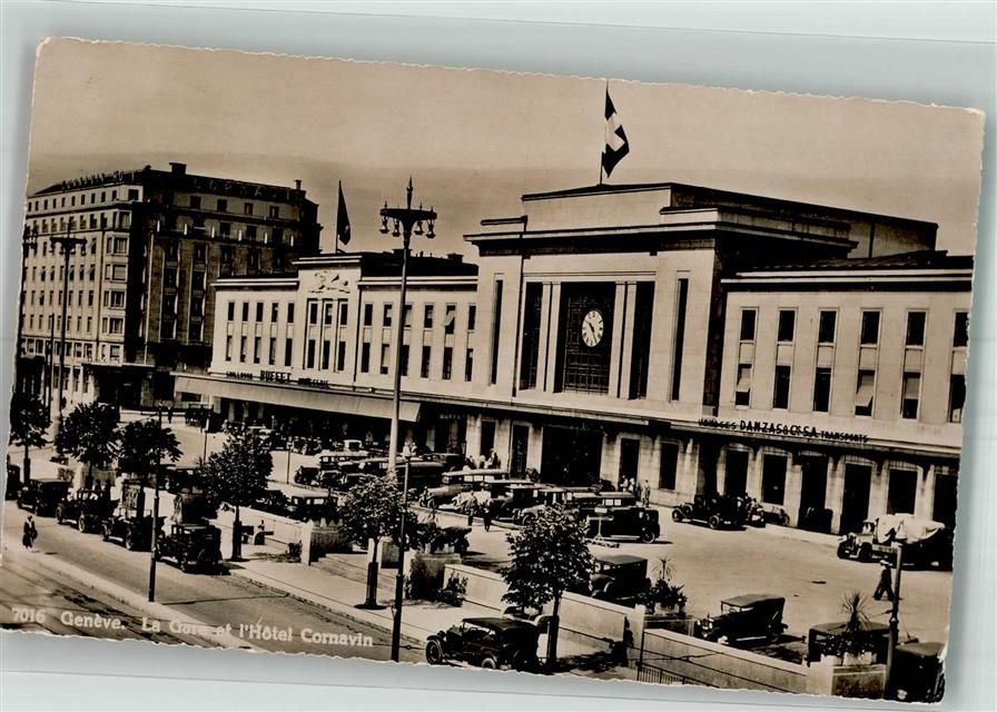 1200 Genève Genf Foto AK Auto Bahnhof Hotel Cornavon