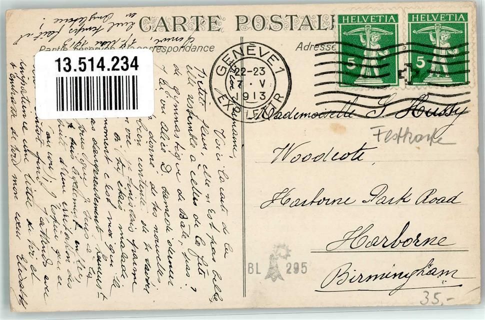 Genève, Journee des Colonies de Vacances 1913 Festkarte Ort lt. Stempel