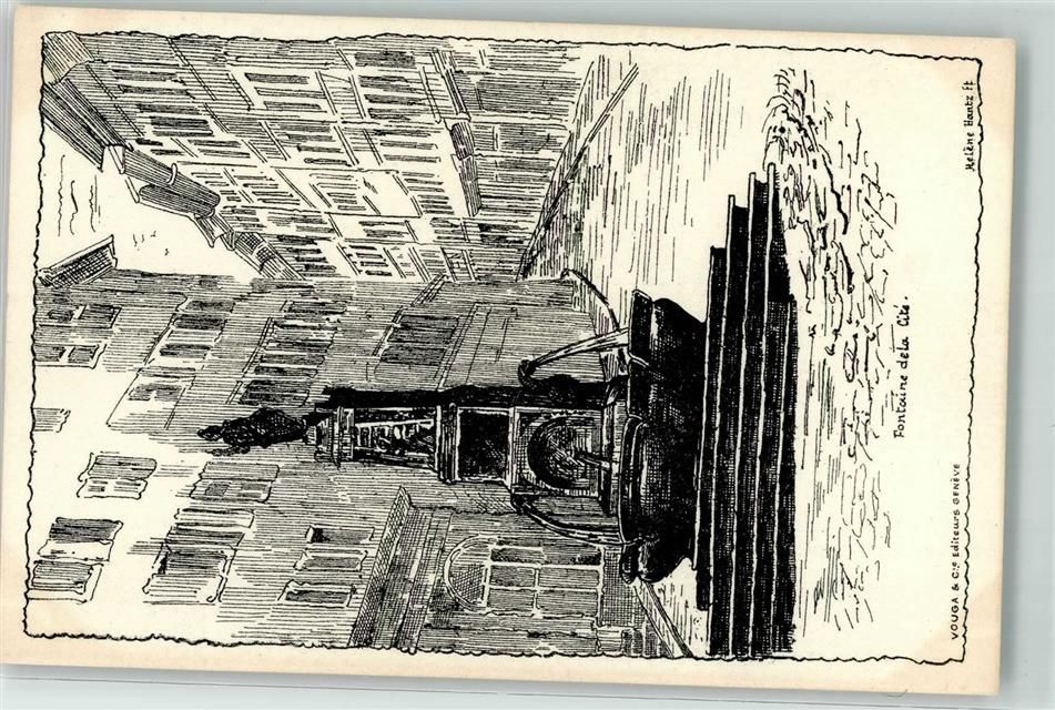 1200 Genève Genf Künstlerkarte Fontaine de la Cite sign. Helene Hantz