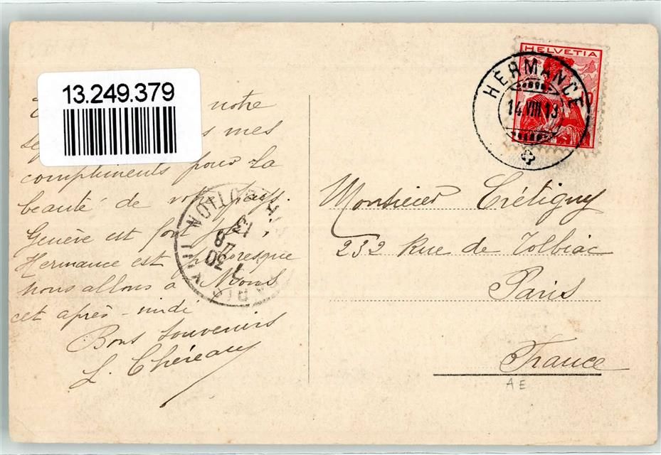 1248 Hermance 1913 - Rue du Nord Viehwagen Leiter Besen Hühner Landwirtschaft