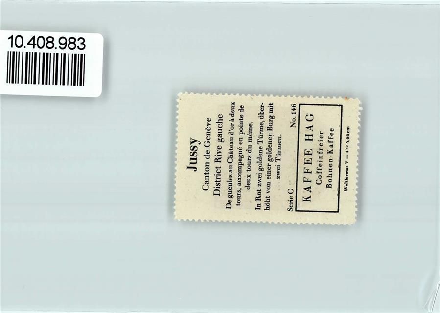 1254 Jussy - Vignette Wappen Kaffee Hag ca 1920-1940 Burg Turm