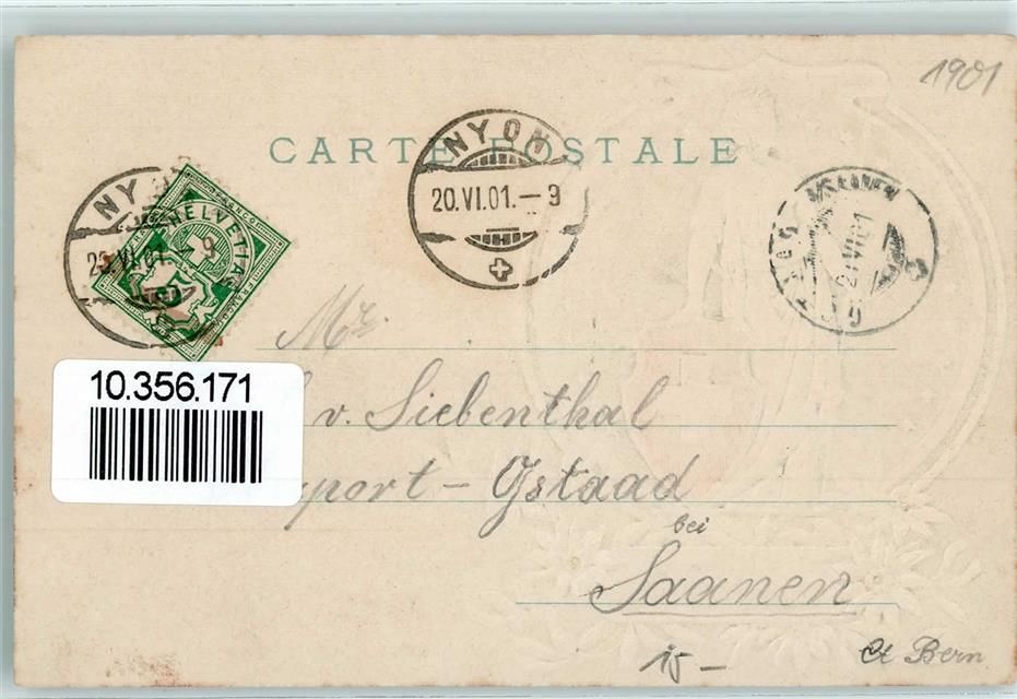 1260 Nyon 1901 Prägedruck Helvetia Wappen Ort lt. Stempel