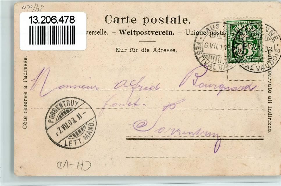 1261 Le Vaud - Festival Vaudois 1803-1903 , Offit. Karte Nr. 5 AK
