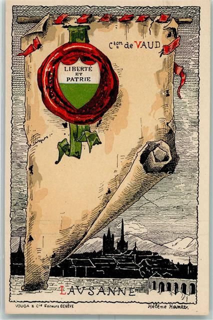 1261 Le Vaud Künstlerkarte Liberte et Patrie Siegel sign
