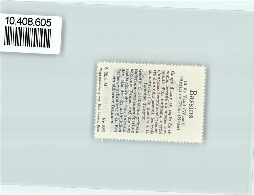 1269 Bassins - Vignette Wappen Kaffee Hag ca 1920-1940 Bär Sperling Fuchs Brunnen