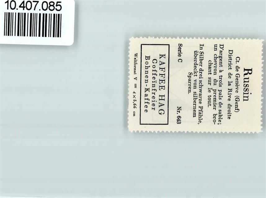 Russin, Vignette Wappen Kaffee Hag 1920-1940