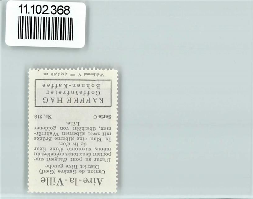 Aire-la-Ville, Vignette Wappen Kaffee Hag ca 1920-1940