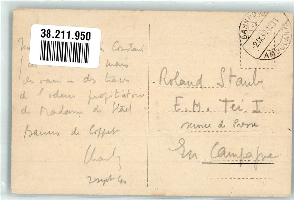 Coppet, Schloss Le Petit Salon Bahnpost Zug 1231