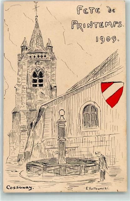 1304 Cossonay-Ville 1909 - Fete de Printemps Eglise sign.