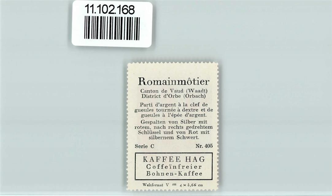 Romainmôtier-Envy , Vignette Wappen Kaffee Hag ca 1920-1940