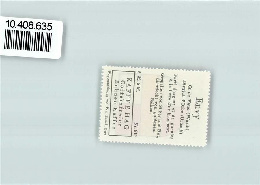 Romainmôtier-Envy , Vignette Wappen Kaffee Hag ca 1920-1940