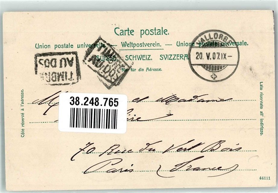 1337 Vallorbe 1907 Foto AK Viadukt Marke bildseitig