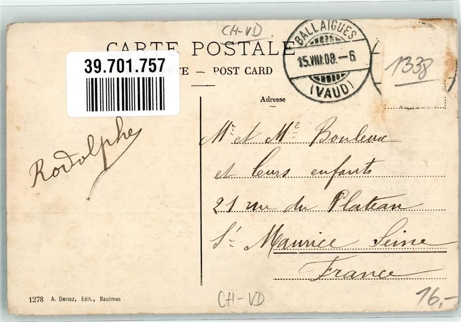 1338 Ballaigues 1908 Gebrauchsspuren Grand Hotel Aubepine