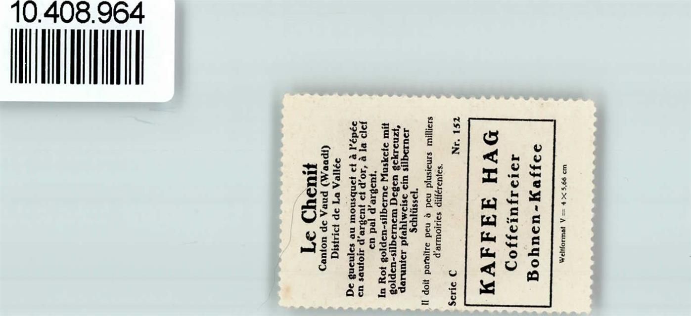 Le Sentier, Vignette Wappen Kaffee Hag ca 1920-1940 Schlüssel Muskete Degen Le Chenit
