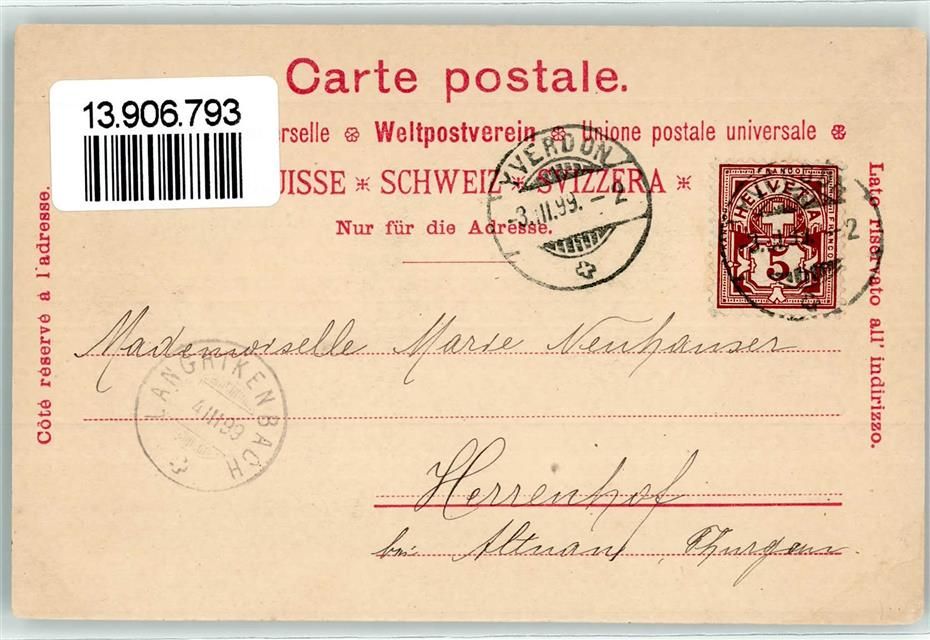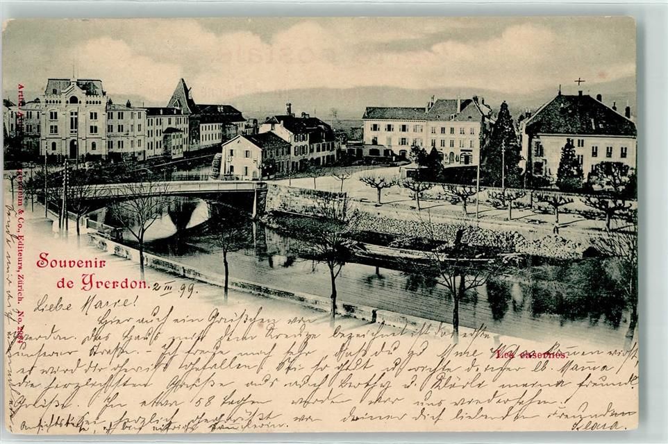 1400 Yverdon-les-Bains 1899 - Souvenier de Yverdon Brücke Ruderboot