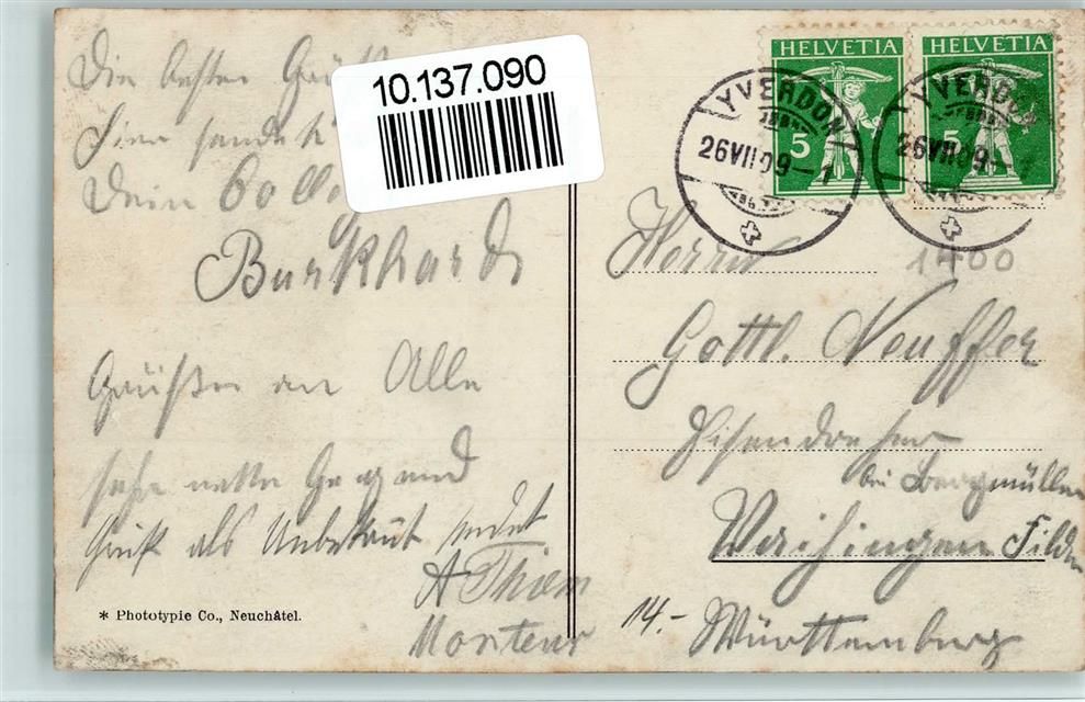 1400 Yverdon-les-Bains 1909 Gebrauchsspuren Phototypie 6496 - AK