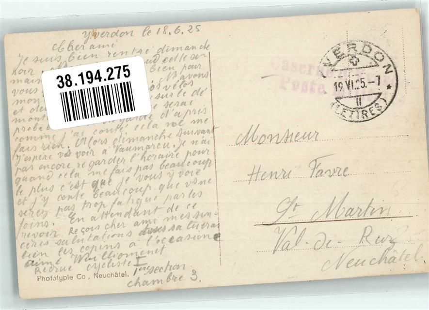 1400 Yverdon-les-Bains 1925 Foto AK Kaserne Feldpost