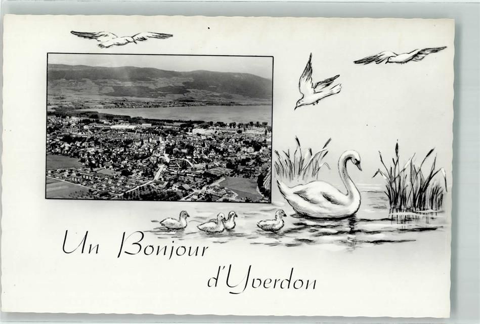 1400 Yverdon-les-Bains - Schwan Möwen Fliegeraufnahme