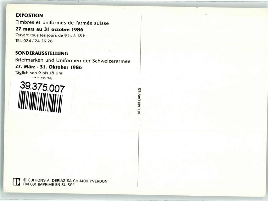 1422 Grandson - Chateau Exposition Timbres et Uniformes de l armee suisse
