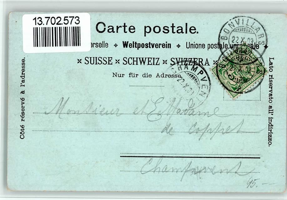 Bonvillars, Lithographie/Mondschein Kirche Eglise Tilleul La Cour de Bonvillars sejour de Charles-Le-Temeraire Gebrauchsspuren, bitte Scan genau beachten!