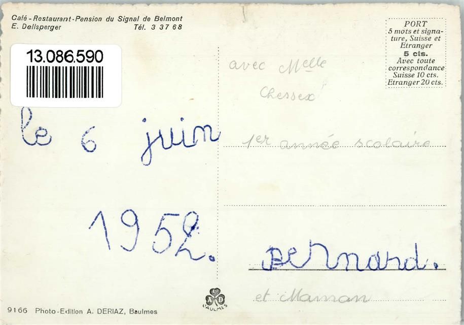 Belmont-sur-Yverdon, Verlag Deriaz 9166 Cafe Pension du signal de Belmont