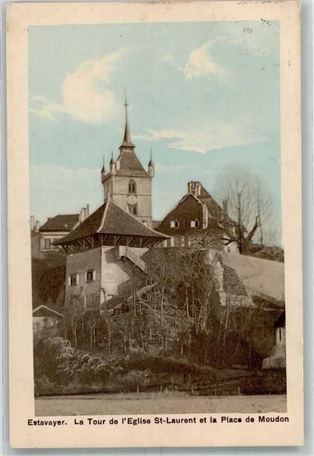 1470 Estavayer-le-Lac 1920 Foto AK Kirche St. Laurent Place de Moudon