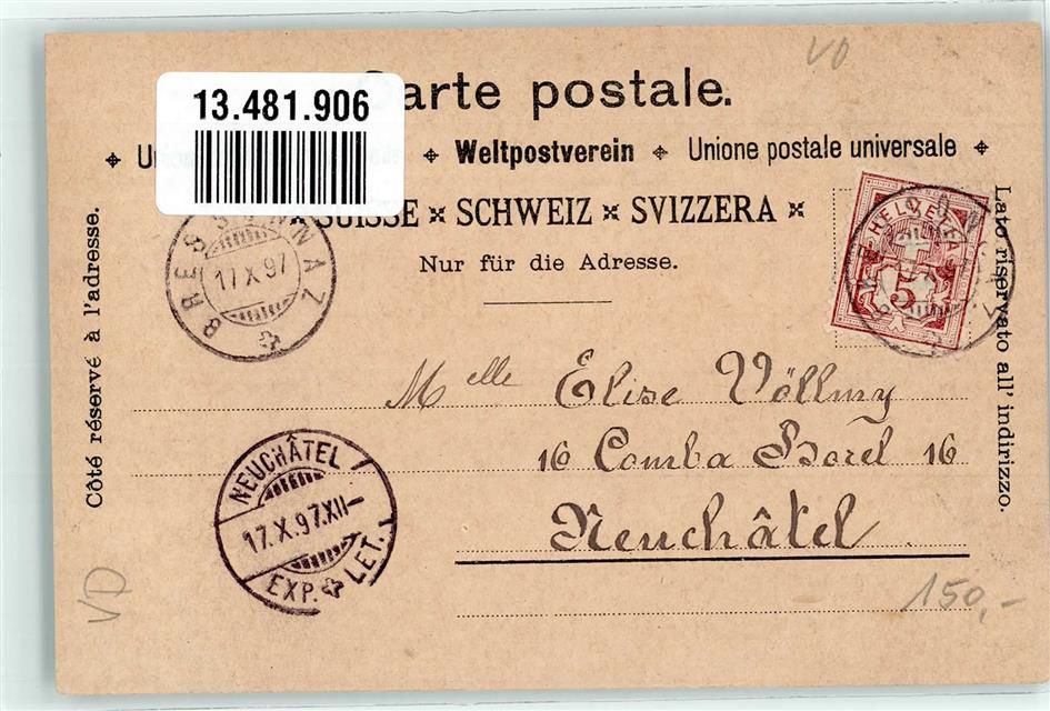 1510 Moudon 1897 Gebrauchsspuren Lithographie