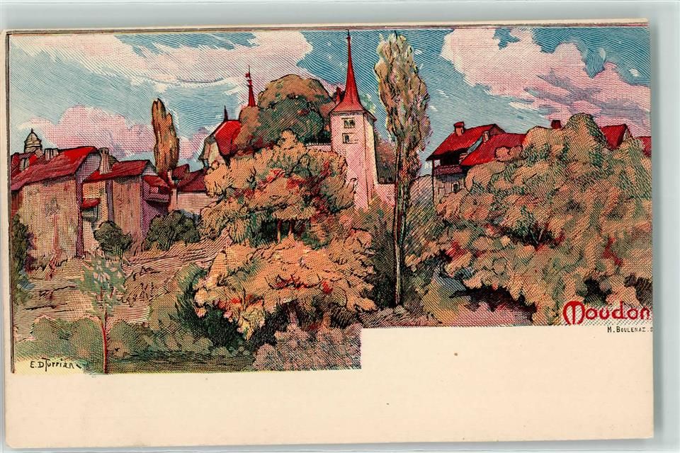 1510 Moudon Künstlerkarte Kirche sign. E. D Turrian
