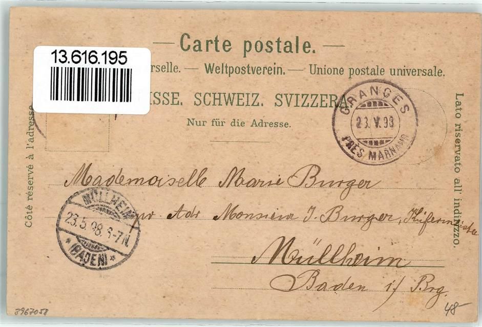 1530 Payerne 1898 Lithographie Bahnhof Eisenbahn Rosen
