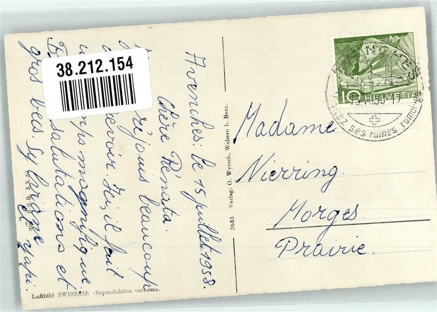 1580 Avenches 1958 Foto AK Fliegeraufnahme