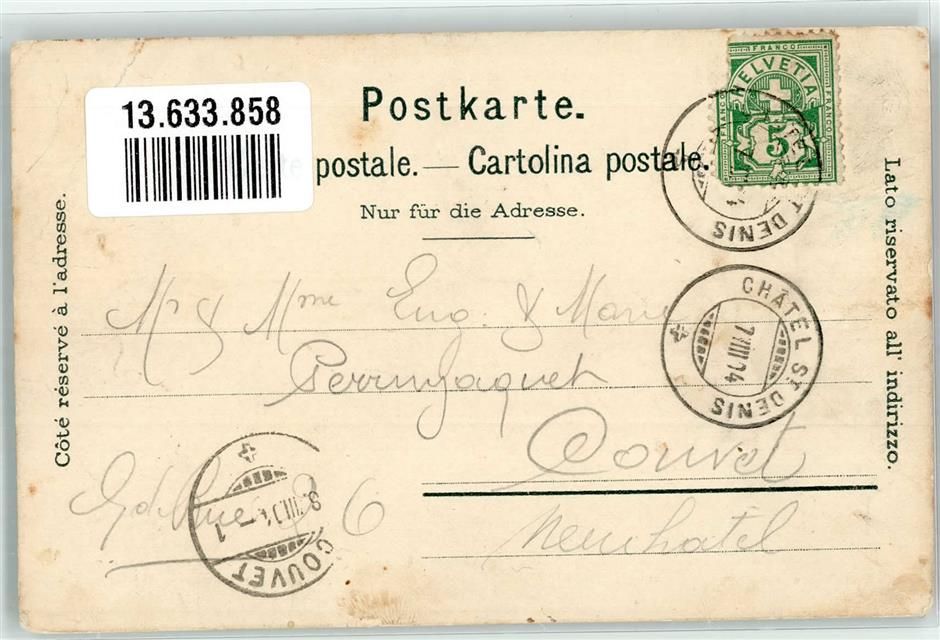 1618 Châtel-St-Denis 1904 Gebrauchsspuren Hotel de Ville L'Aigle Lithographie