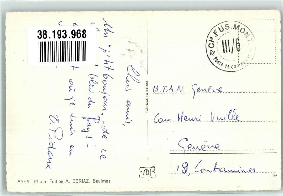 Rossinière, Feldpost CP.Fus.Mont. III/6