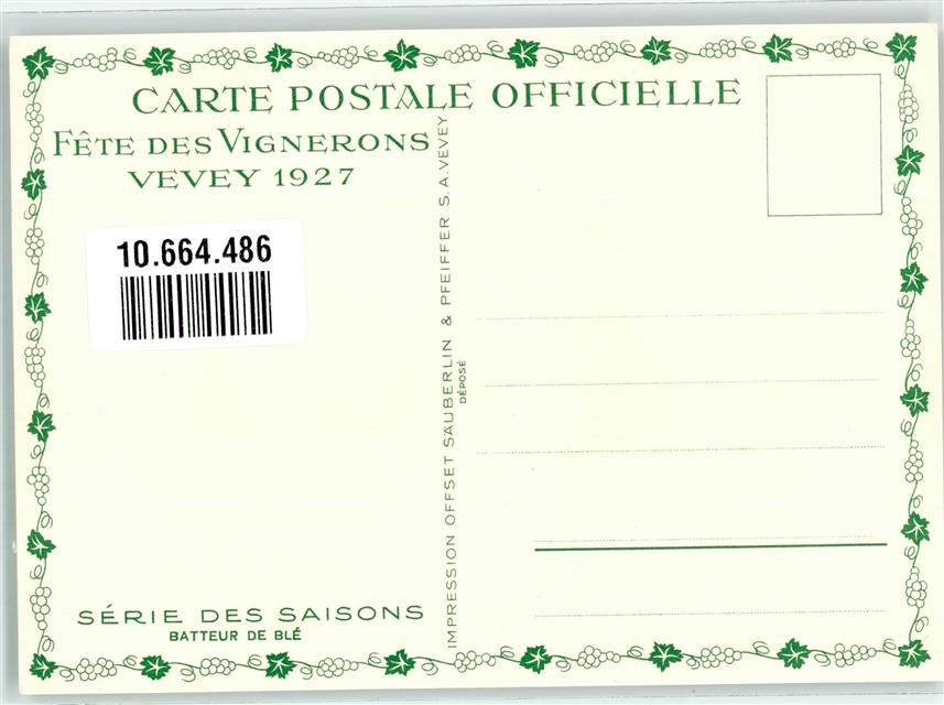 1800 Vevey 1927 Künstlerkarte Weizenschläger Serie des Saisons sign. ESTB