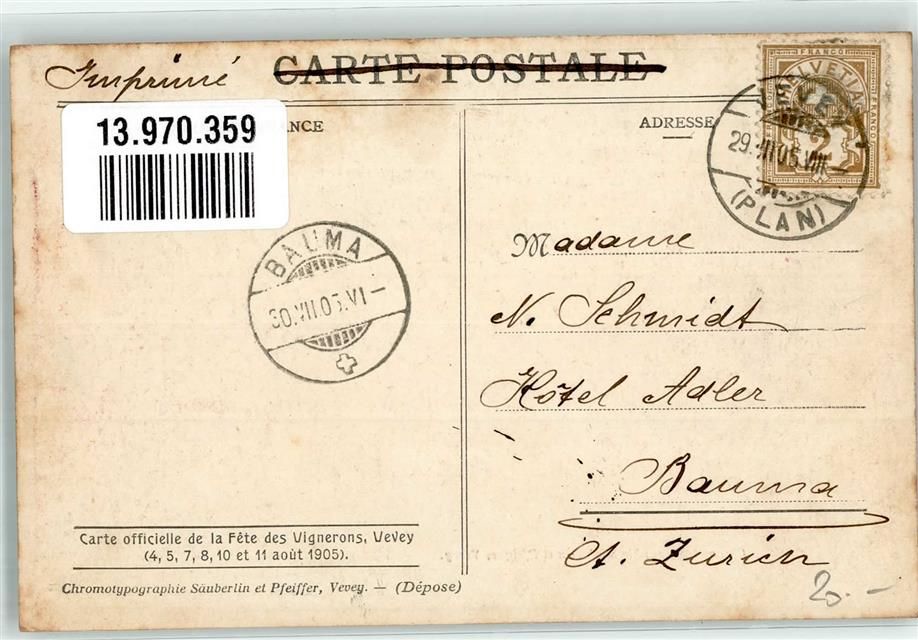 Vevey, sign Bieler Fete des Vignerons 1905 Le Char de Bacchus