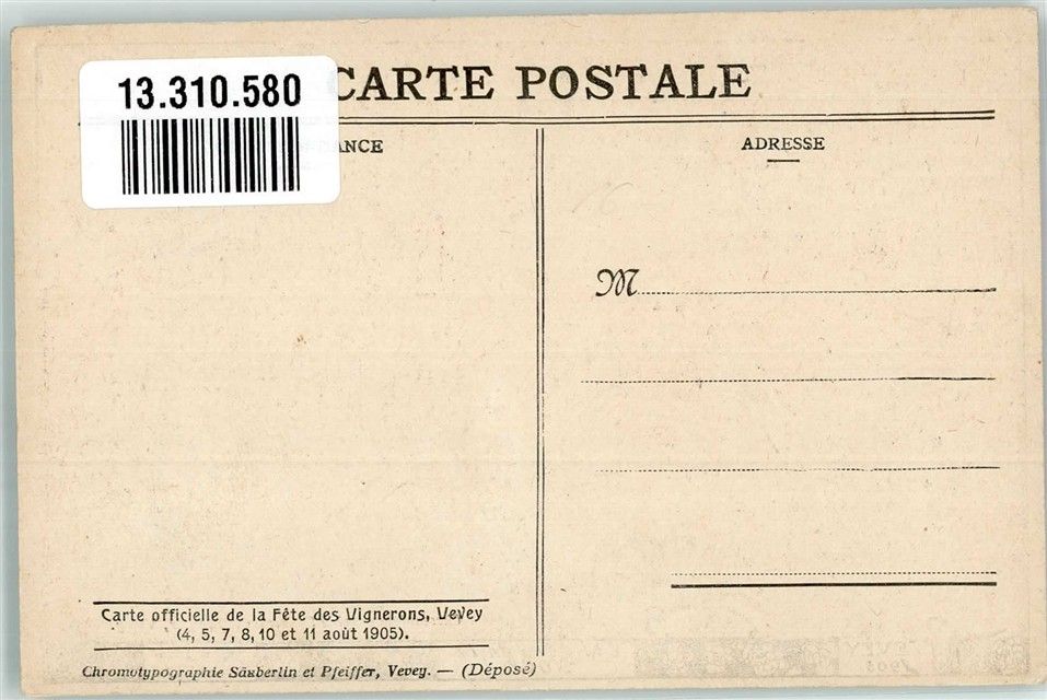 1800 Vevey Lithographie Tracht Weinfest 1905