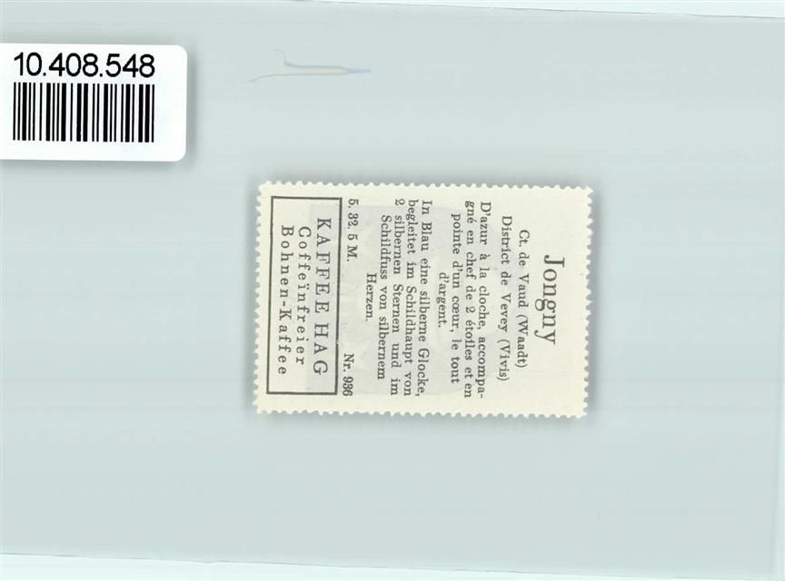 Jongny, Vignette Wappen Kaffee Hag ca 1920-1940 Glocke Herz Stern