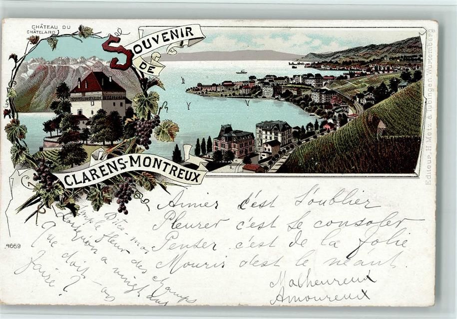 1815 Clarens 1897 Lithographie Gruss aus - Nr. 4669 Verlag Metz