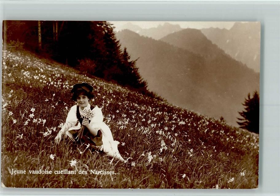 Clarens, Jeune vaudoise cueillant des Narcisses